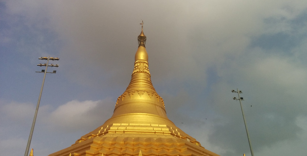 pagoda. Gleaming in the bright sun in the otherwise hazy days of July, the gold of the global pagoda grabs